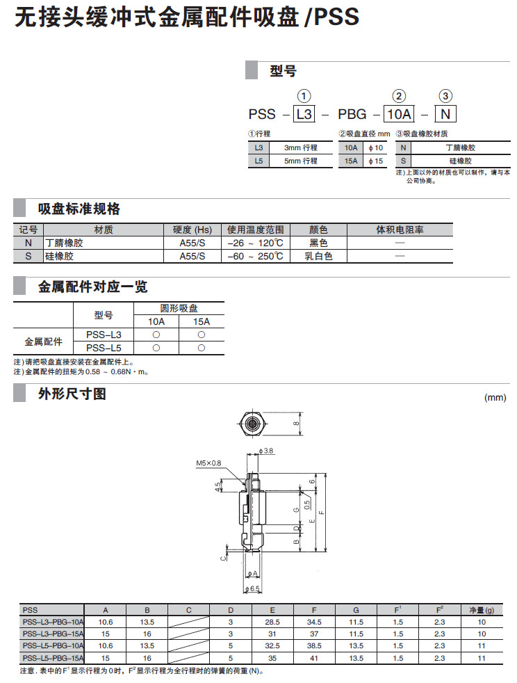 PSS-L3-PBG-10A,PSS-L3-PBG-15A,PSS-L5-PBG-10A,PSS-L5-PBG-15A,吸盤