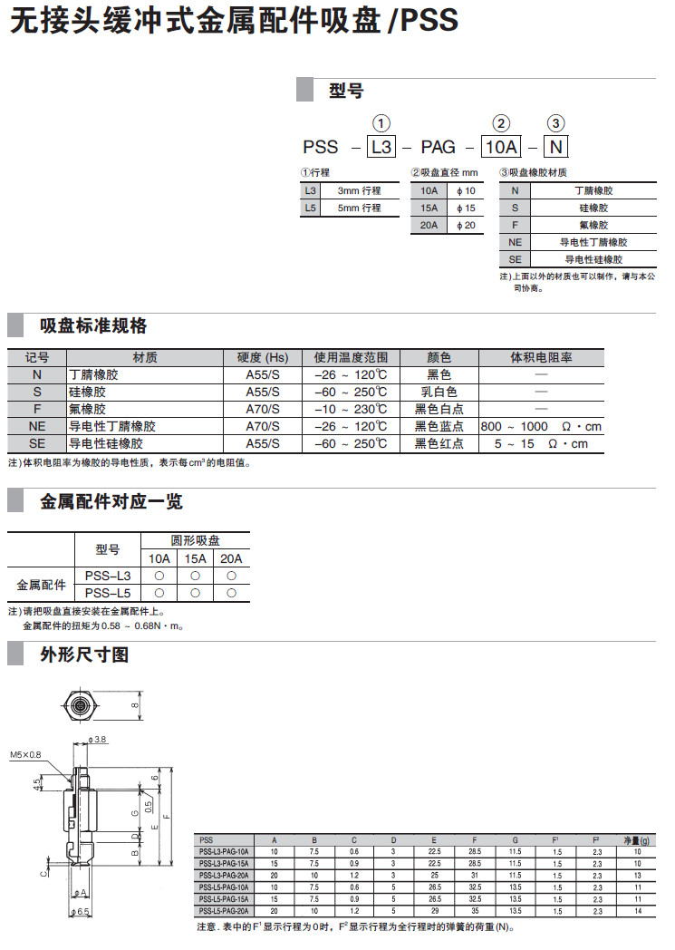PSS-L3-PAG-10A,PSS-L3-PAG-15A,PSS-L3-PAG-20A,PSS-L5-PAG-10A,PSS-L5-PAG-15A,PSS-L5-PAG-20A,吸盤