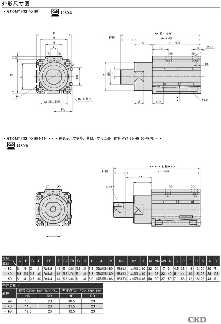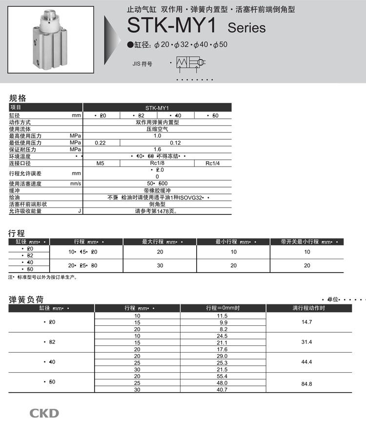 STK-MY1-20-10,STK-MY1-32-10,STK-MY1-40-20,STK-MY1-50-20,STK-MY1-20-15,STK-MY1-40-25,CKD止動氣缸