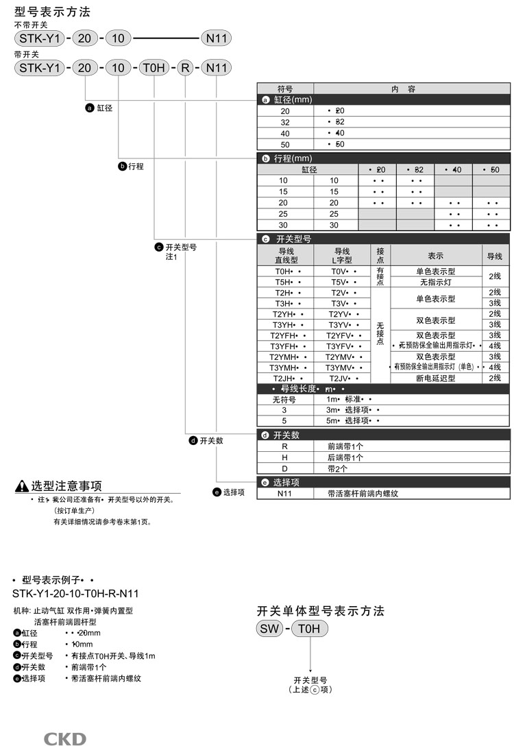 STK-Y1-20-10,STK-Y1-32-10,STK-Y1-40-20,STK-Y1-50-20,STK-Y1-20-15,STK-Y1-40-25,CKD止動氣缸