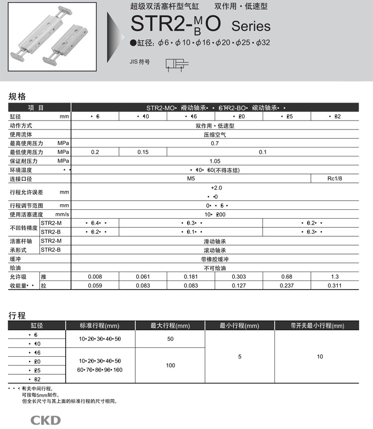 STR2-MO-6-10,STR2-BO-6-10,STR2-MO-10-10,STR2-BO-10-40,STR2-BO-32-100,CKD雙活塞桿型氣缸
