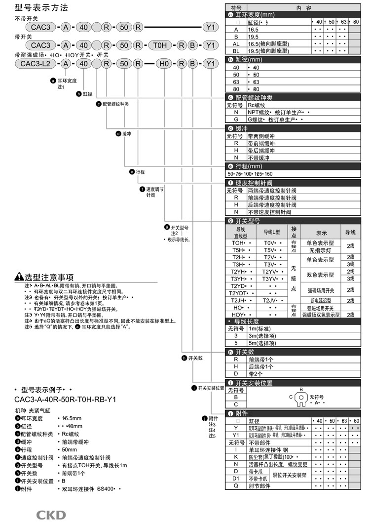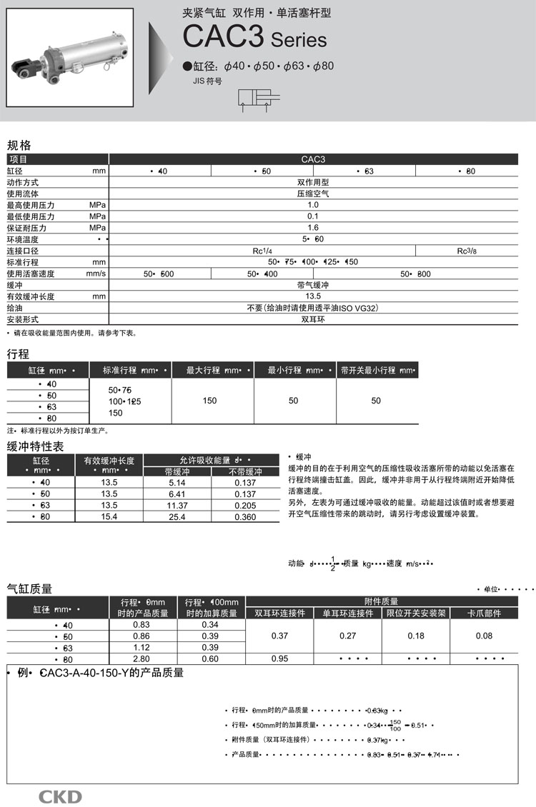 CAC3-A,CAC3-B,CAC3-AL,CAC3-BL,CAC3-L2-A,CAC3-L2-B,CAC3-L2-AL,CAC3-L2-BL,CKD夾緊氣缸