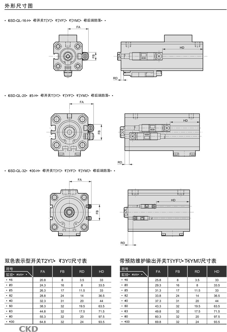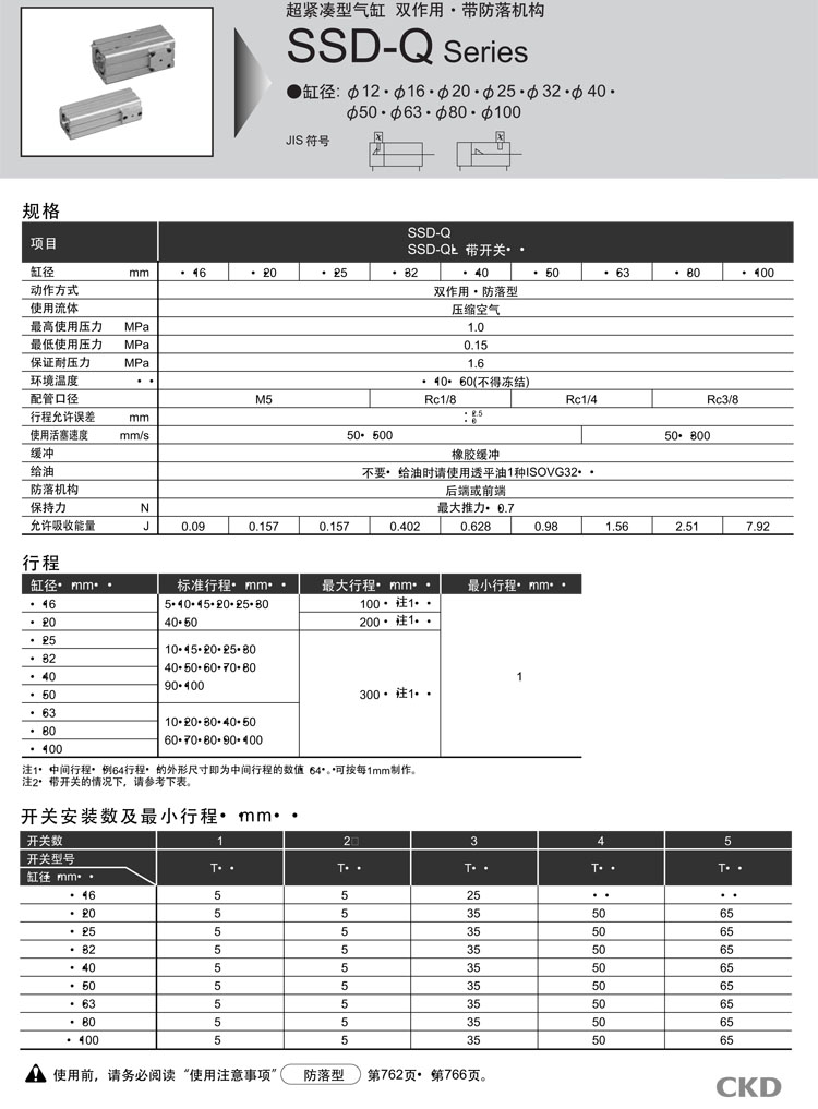 SSD-QL-16,SSD-QL-20,SSD-QL-25,SSD-QL-32,SSD-QL-40,SSD-QL-50,SSD-QL-63,SSD-QL-80,SSD-QL-100,CKD超緊湊型氣缸
