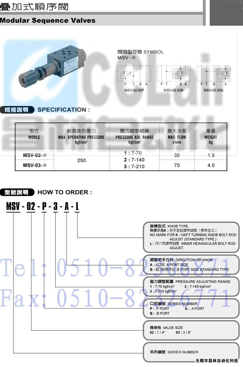 | MSV-03-A-1-B-L, | 疊加式順序閥 | |