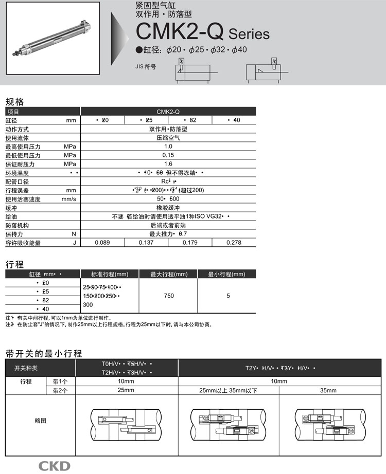 CMK2-Q-TA-40-250,CMK2-Q-TA-40-300,CMK2-Q-TB-40-25,CMK2-Q-TB-40-50,CMK2-Q-TB-40-75,CMK2-Q-TB-40-100,CKD緊固型氣缸