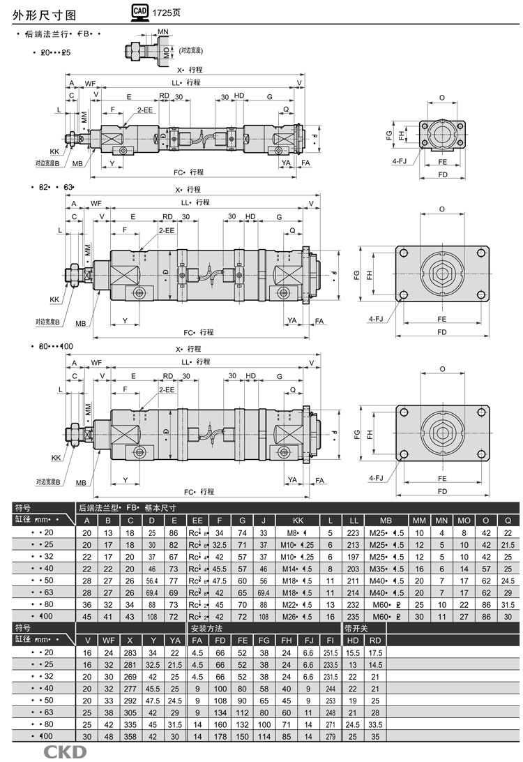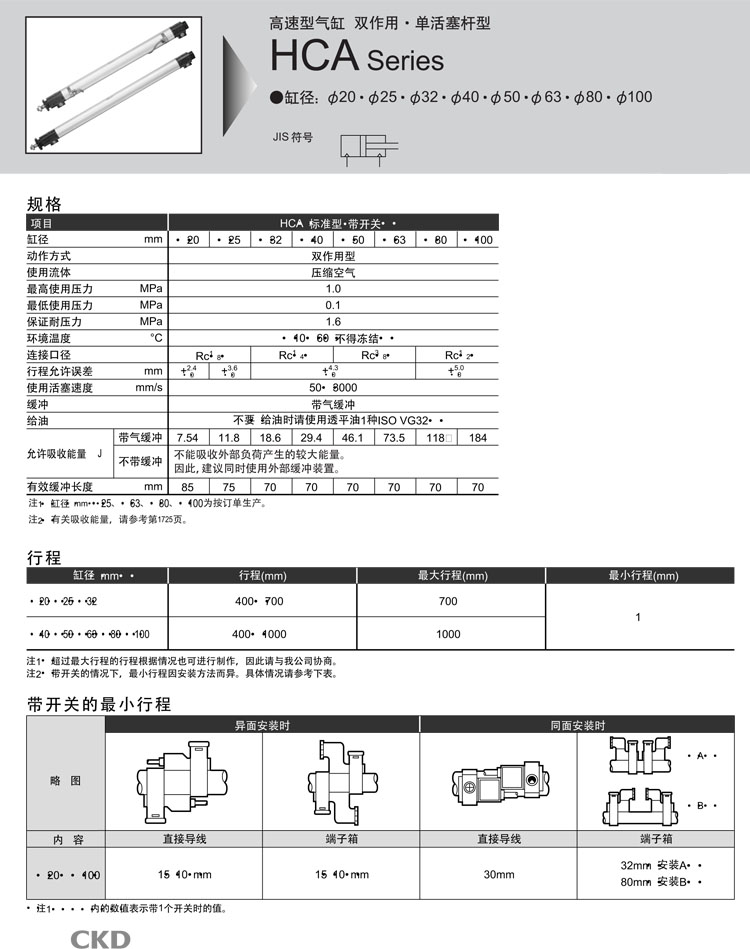 HCA-FB-100B-700,HCA-FB-100B-750,HCA-FB-100B-800,HCA-FB-100B-850,HCA-FB-100B-900,HCA-FB-100B-950,CKD高速型氣缸