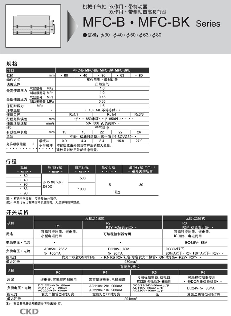 MFC-BKL-FA-80B-150,MFC-BKL-FA-80B-200,MFC-BKL-FA-80B-300,MFC-BKL-FB-80B-50,MFC-BKL-FB-80B-75,CKD機(jī)械手氣缸
