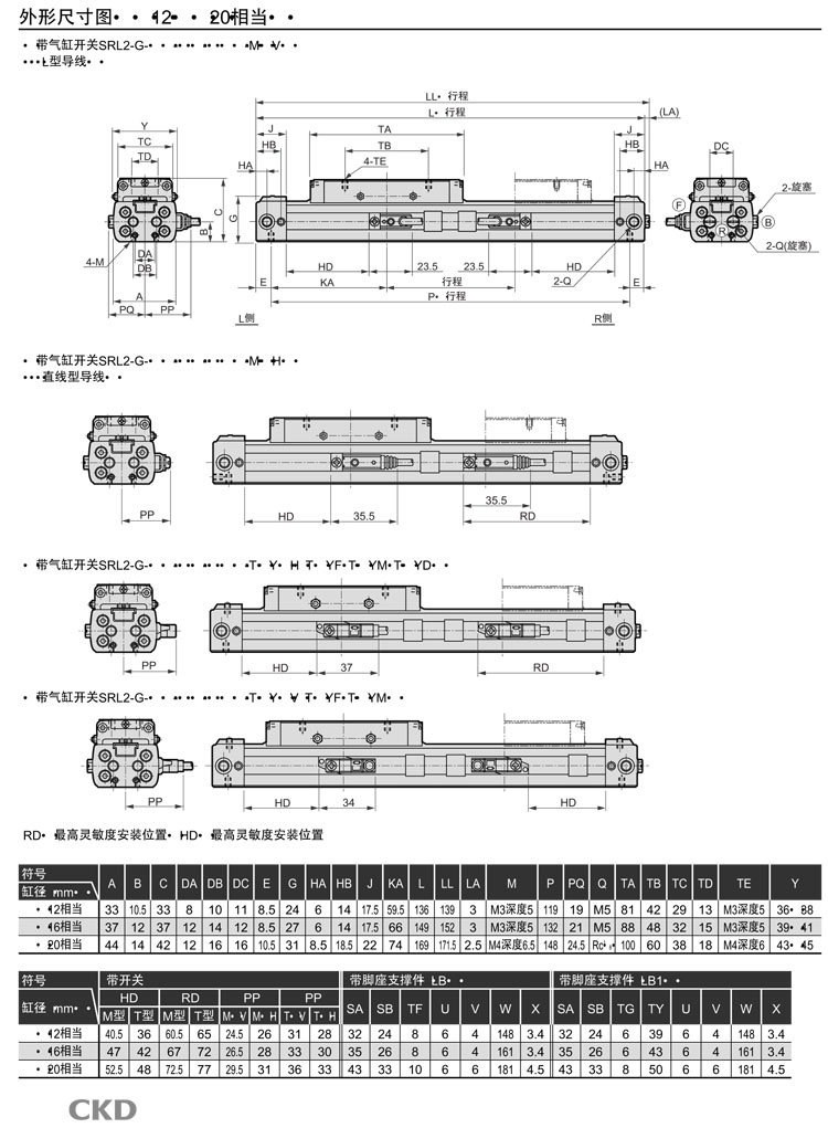 SRL2-G-00-12B-200,SRL2-G-LB-12B-200,SRL2-G-LB1-12B-200,SRL2-G-LB1-100B-700,CKD超級(jí)無活塞桿型氣缸