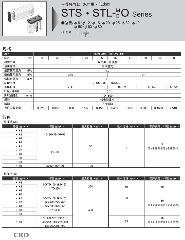 STS-MO-8-10,STS-MO-8-20,STS-MO-8-30,STS-MO-8-40,STS-MO-8-50,CKD帶導(dǎo)桿氣缸