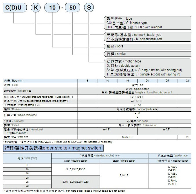 CUK6,CUK10,CUK16,CUK20,CUK25,CUK32,CDUK6,CDUK10,CDUK16,CDUK20,CDUK25,CDUK32,自由安裝氣缸