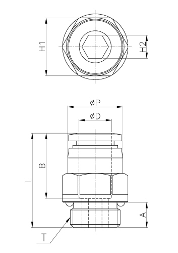 | Model | ∅D | ∅P | T | L | A | B | H1(Hex) | H2(Hex) | ORIFICE | WEIGHT(g) | EA(BOX) |