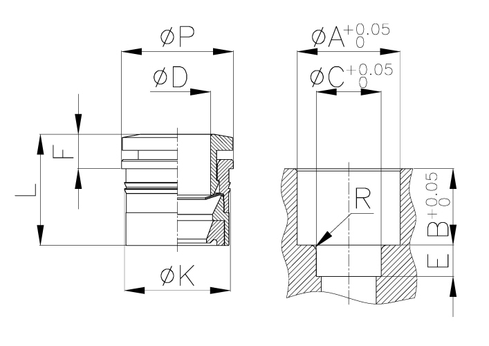 | Model | ∅D | ∅P | ∅K | ∅A | ∅C | L | F | B | E | R | WEIGHT(g) | BOX(EA) |