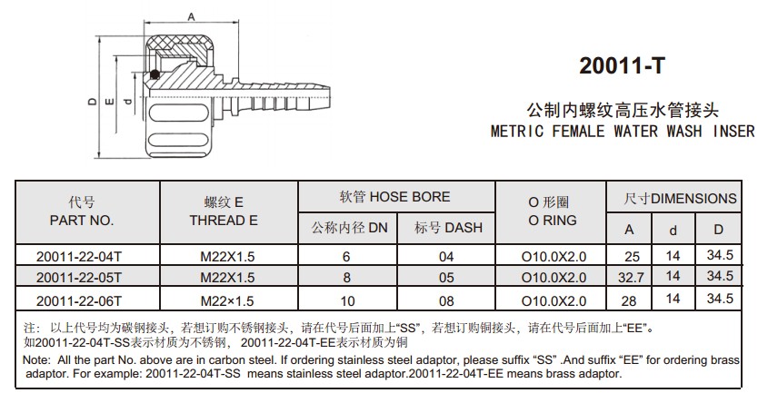 20011-22-04T,20011-22-05T,20011-22-06T,扣壓式軟管接頭