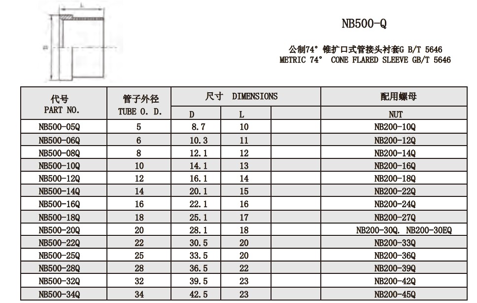 NB500-05Q,NB500-06Q,NB500-08Q,NB500-10Q,NB500-12Q,NB500-14Q,NB500-16Q,NB500-18Q,錐擴口式管接頭