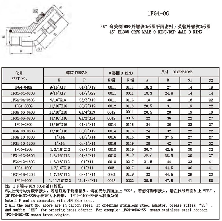 1FG4-040G,1FG4-060G,1FG4-080G,1FG4-120G,1FG4-160G,1FG4-200G,美螺紋O形圈密封接頭