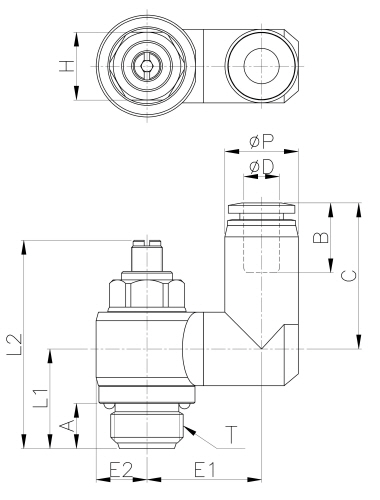 | Model | ∅D | ∅P | T | L1 | L2/MIN | L2/MAX | E1 | E2 | A | B | H(Hex) | C | WEIGHT(g) | EA(BOX) |