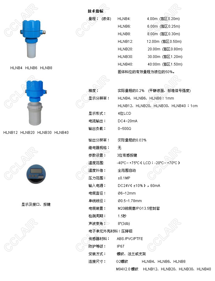 HLNB4,HLNB6,HLNB8,HLNB12,HLNB20,HLNB30,HLNB40,HLNB一體式超聲波物位計