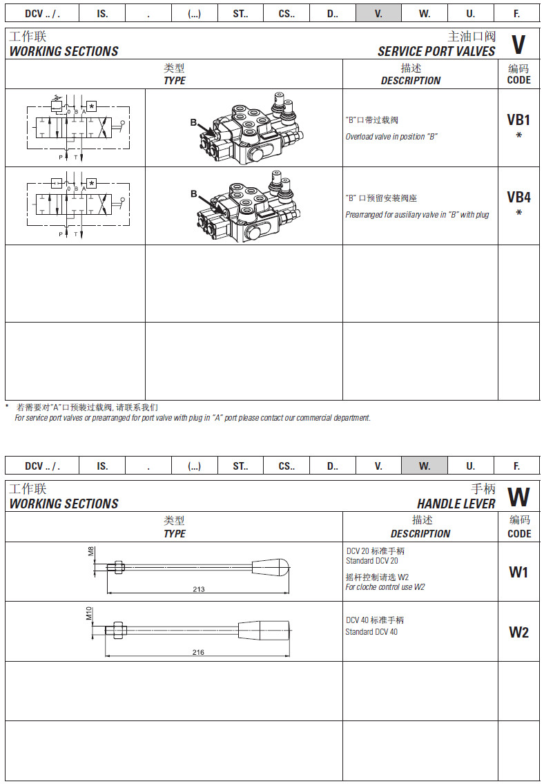DCV20/1,DCV20/2,DCV20/3,DCV20/4,DCV20/5,DCV20/6,DCV40/1,DCV40/2,DCV40/3,多路換向閥