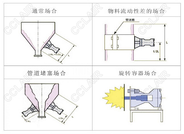 ◎通過壓縮空氣為動(dòng)力,瞬間釋放,推動(dòng)內(nèi)部的錘頭打擊底部,將強(qiáng)力沖力傳遞給料斗壁面,有效地?fù)羝莆锪纤鶚?gòu)成的拱橋,使積料松動(dòng),達(dá)到卸灰順暢的目的。
