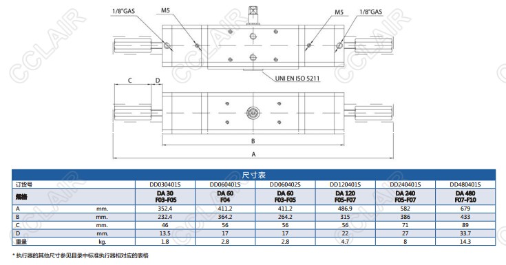 字母DD后面的數(shù)字代碼表示在5.6bar氣源壓力下的扭矩。