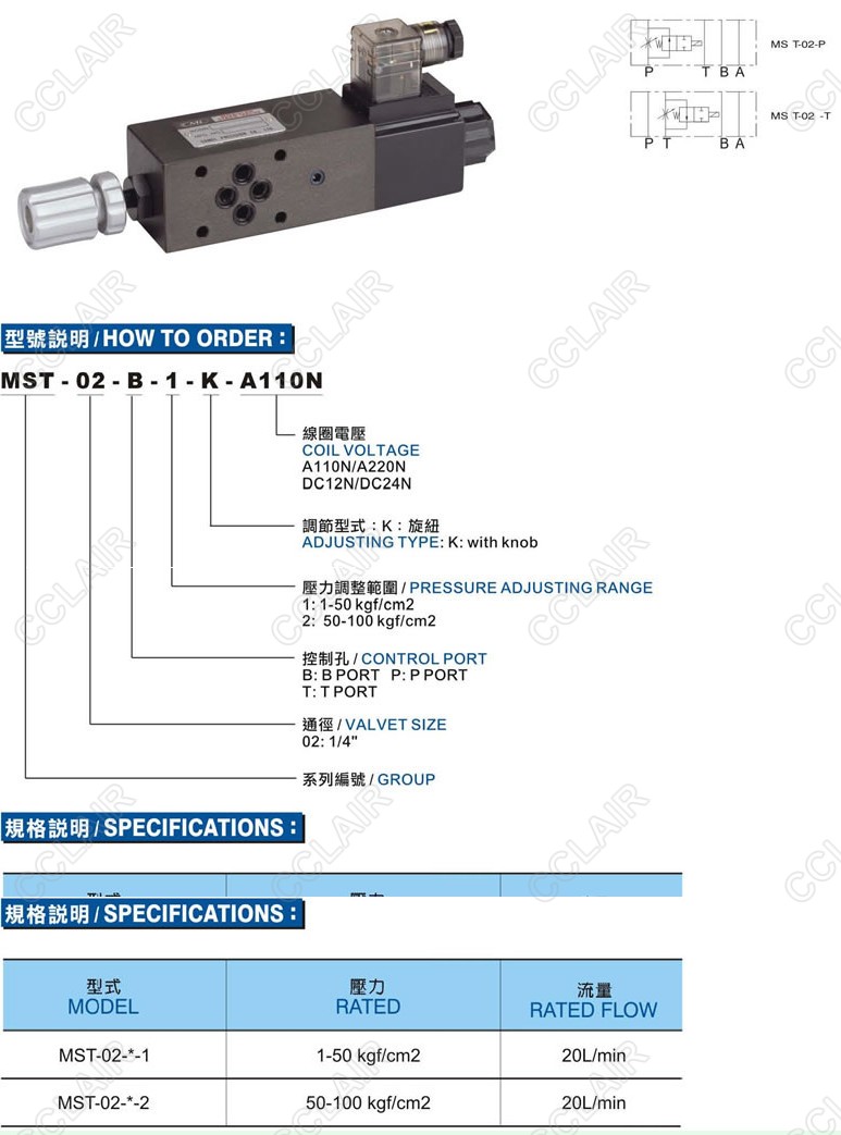 MST-02-B-1-K-A110N,MST-02-T-2-K-DC24N,積層式電磁流量控制閥CML
