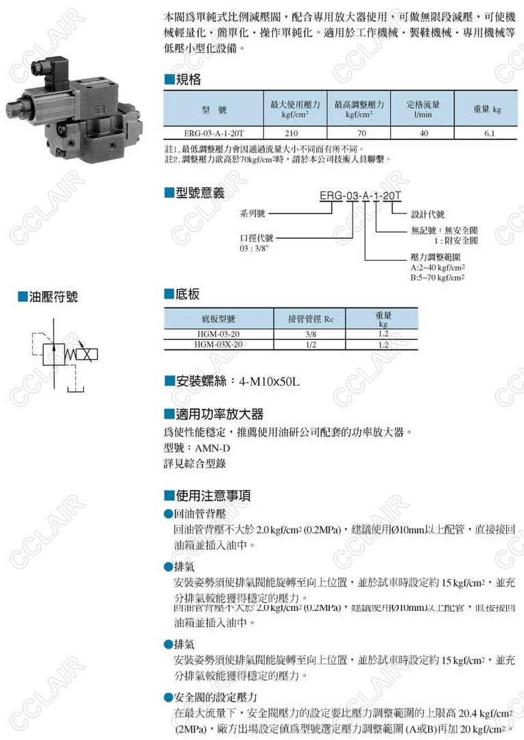 ERG-03-A-20T,ERG-03-A-1-20T,ERG-03-B-1-20T,ERG-03-B-20T,電液比例減壓閥YUKEN