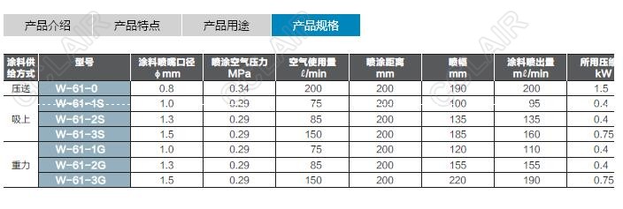 W-61-0,W-61-1S,W-61-2S,W-61-3S,W-61-1G,W-61-2G,W-61-3G,W-61小型噴槍