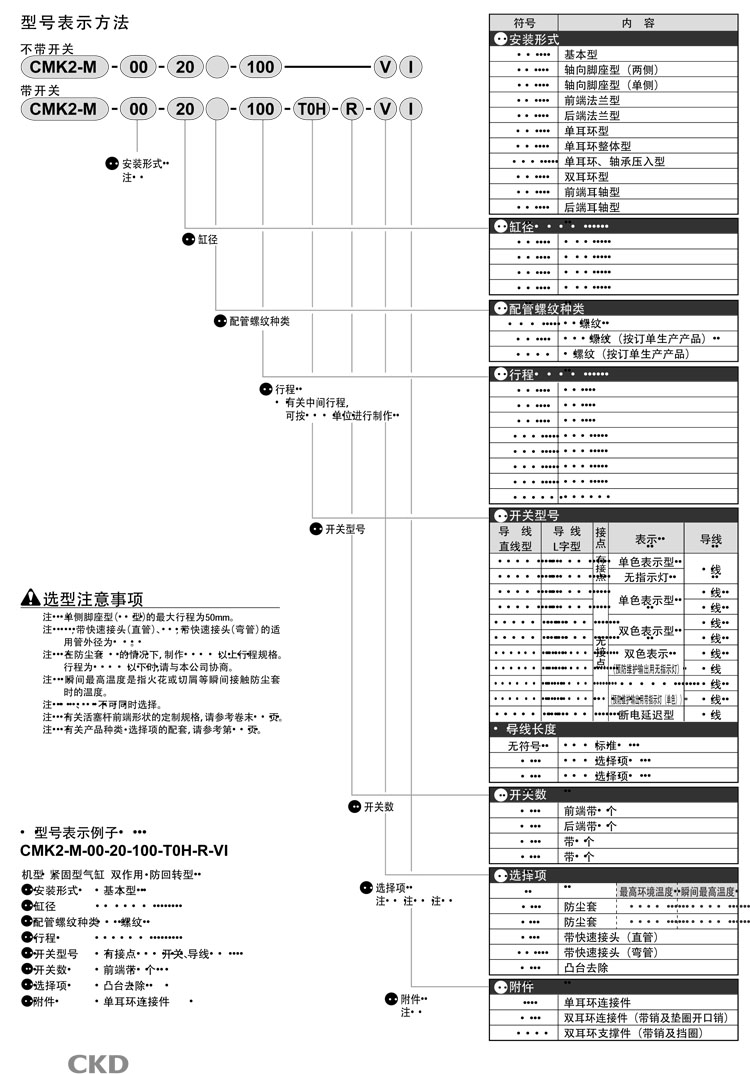 CMK2-M-00-20-25,CMK2-M-00-20-50,CMK2-M-00-20-75,CMK2-M-00-20-100,CMK2-M-00-20-150,CKD緊固型氣缸