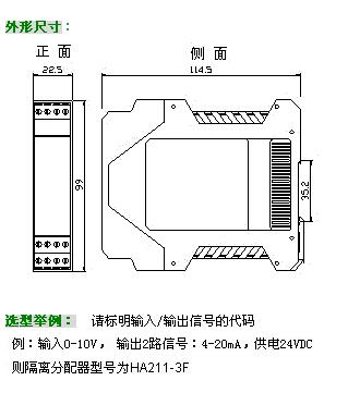 HA211一入二出信號隔離器,又稱一入二出信號分配器,它將輸入的1路直流信號經(jīng)隔離濾波處理,轉(zhuǎn)換分配成2路標(biāo)準(zhǔn)信號如:4-20mA,0-10V,輸出至控制系統(tǒng)或其它智能儀表。輸入/輸出/電源/兩通道之間電磁全隔離,采用進(jìn)口元件,精度高,壽命長,功耗低,穩(wěn)定可靠,有效解決工業(yè)現(xiàn)場干擾及信號轉(zhuǎn)換匹配問題。