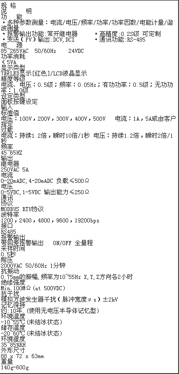SWP-EM系列三相電力儀表采用先進(jìn)的交流采樣技術(shù),能分別測量電網(wǎng)中的電流,電壓,頻率,功率,功率因數(shù)等電參數(shù),可通過面板薄膜開關(guān)切換顯示內(nèi)容及設(shè)置內(nèi)部參數(shù)??捎肦S-485通訊接口與微機(jī)實(shí)現(xiàn)通訊,極大地方便了用電自動(dòng)化管理;也可將電量信號(hào)轉(zhuǎn)換成標(biāo)準(zhǔn)的直流模擬信號(hào)輸出;帶2路繼電器報(bào)警輸出。采用標(biāo)準(zhǔn)導(dǎo)軌式安裝,節(jié)約空間。