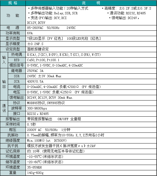 集數(shù)字儀表與模擬儀表于一體,可對(duì)溫度、壓力、液位、速度等測(cè)量信號(hào)進(jìn)行數(shù)字量顯示控制(高亮度LED數(shù)碼顯示)及相對(duì)模擬量顯示(光柱顯示),使測(cè)量值的顯示更為清晰直觀。0.2%高測(cè)量精度,通道算術(shù)運(yùn)算功能,使用更為簡(jiǎn)單方便。