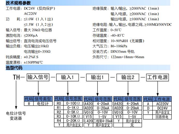 TH-R-R2-A420-D,TH-R-R4-2A420-D,TH-R-Y-A420-D,TH-R-R2-L420,TH電位計(jì)信號(hào)變送器