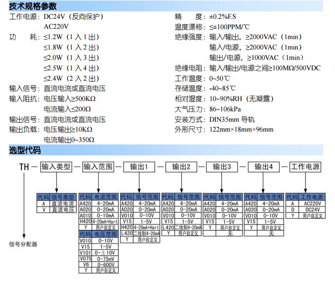 TH-A-A420-2A420-D 輸入:4~20mA 輸出1:4~20mA 輸出2:4~20mA 電源:DC24V