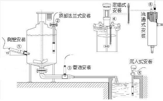 為保證電極在管路上正確測量出pH值,應(yīng)避免測量池間出現(xiàn)氣泡而造成數(shù)據(jù)失準(zhǔn),請嚴(yán)格按下圖安裝