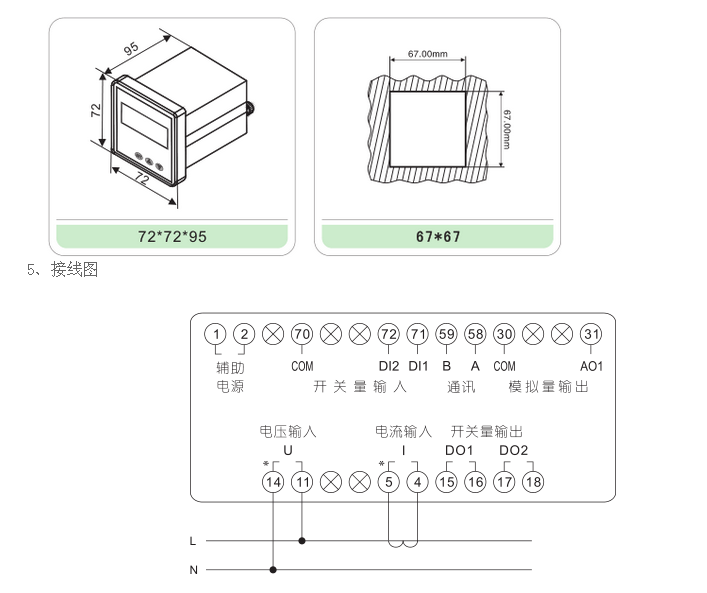 擴(kuò)展:AC5A以上需配電流互感器,AC500V以上需配電壓互感器,現(xiàn)場(chǎng)可編程設(shè)置輸入?yún)?shù)變比。