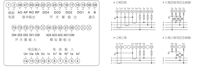 測(cè)量:三相電壓、電流、有功功率、無(wú)功功率、功率因數(shù)、頻率、有功電能、無(wú)功電能。