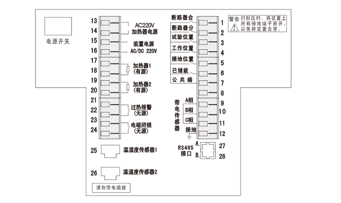 該產(chǎn)品功能強(qiáng)大,有帶電顯示,溫濕度數(shù)字顯示,三相觸頭溫度值顯示,自動(dòng)加熱除濕控制,斷路器分合閘狀態(tài)指示,儲(chǔ)能、接地開關(guān)指示,手車位置指示,一次回路模擬圖,二次回路電壓數(shù)值顯示,人體感應(yīng)柜內(nèi)照明,智能語音防誤提示,語音帶電提示,分合閘回路指示,電壓、電流、有功功率、無功功率、功率因數(shù)、頻率測(cè)量以及RS485通訊接口等功能。