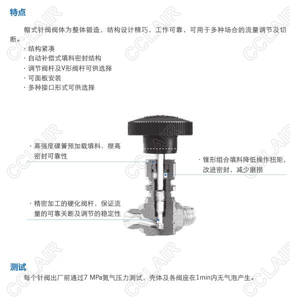 帽式針閥閥體為整體鍛造,結(jié)構(gòu)設(shè)計精巧,工作可靠,可用于多種場合的流量調(diào)節(jié)及切斷。