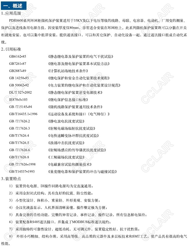 PDR8600,PDR8610,PDR8620,PDR8660環(huán)網(wǎng)柜微機(jī)保護(hù)裝置簡介