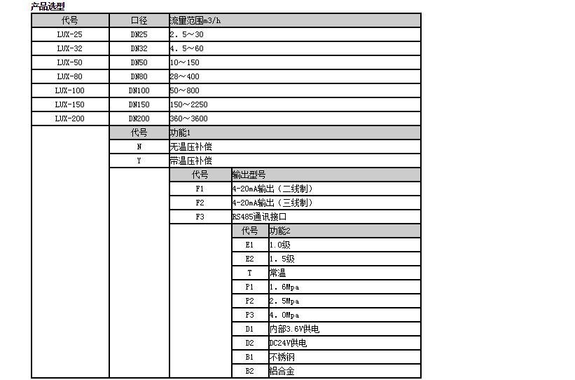 1、流量計(jì)規(guī)格、基本參數(shù)和性能指標(biāo)
