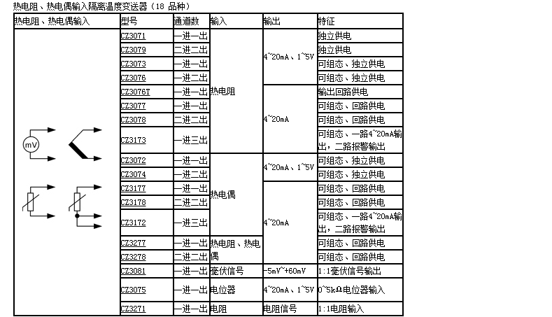 CZ3000系列信號(hào)隔離器、轉(zhuǎn)換器、報(bào)警設(shè)定器是連接于工業(yè)現(xiàn)場(chǎng)儀表與控制室之間的電氣設(shè)備。它通過電源、輸入、輸出之間的可靠隔離,有效解決工業(yè)自動(dòng)化控制系統(tǒng)現(xiàn)場(chǎng)干擾問題,保證系統(tǒng)的穩(wěn)定和可靠運(yùn)行。它是通用型產(chǎn)品,基本覆蓋自控系統(tǒng)中各種信號(hào)隔離、轉(zhuǎn)換、分配、報(bào)警等功能要求。