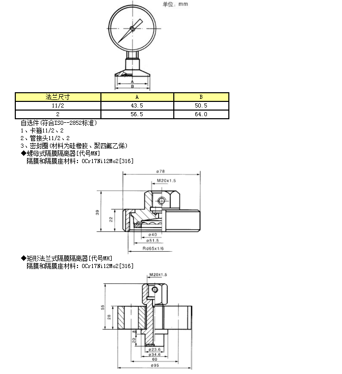 衛(wèi)生型隔膜壓力表是由通用型壓力儀表與隔膜隔離器組成一個系統(tǒng)的隔膜壓力表。具有在工藝現(xiàn)場裝拆快捷方便、不易污染、容易清洗、安全可靠的安全等優(yōu)點。能滿足藥品生產(chǎn)質(zhì)量規(guī)范(GMP)的要求。在制藥、食品、飲水、水處理等行業(yè)對儀表有衛(wèi)生要求的工藝流程中得到廣泛應(yīng)用。