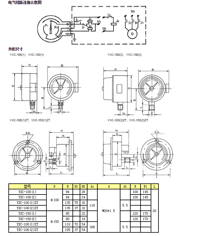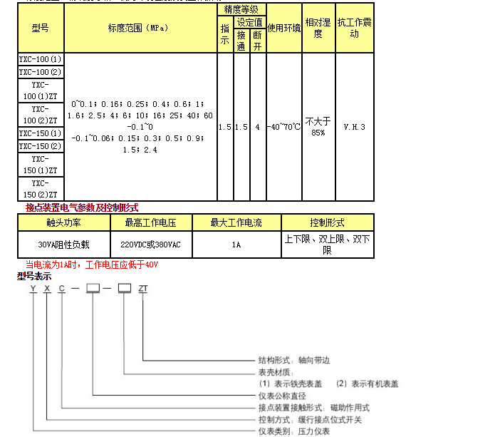 YXC-150(2),YXC-100(1)ZT,YXC-100(2)ZT,磁助電接點壓力表