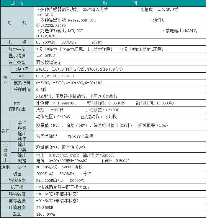 SWP-FC系列人工智能外給定PID調(diào)節(jié)器適用于需要進行高精度測量控制的系統(tǒng),可對溫度、壓力、液位、速度等測量信號進行數(shù)字量顯示控制(高亮度LED數(shù)碼顯示)及相對模擬量顯示(光柱顯示),使測量值的顯示更為清晰直觀。