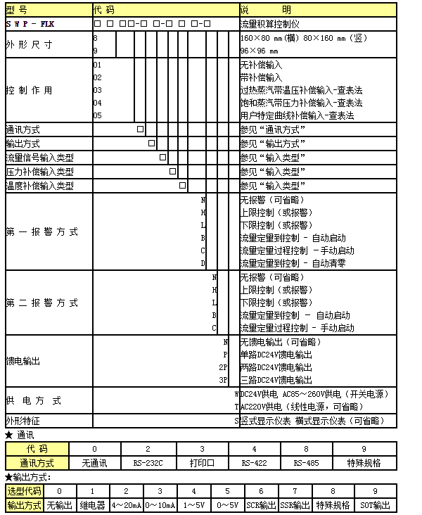 SWP-FLK系列智能流量積算控制儀流量系數(shù)K自動(dòng)演算。它能提供多種狀態(tài)下的質(zhì)量流量積算,如標(biāo)準(zhǔn)體積、質(zhì)量、熱能、流量計(jì)算等。也支持多種補(bǔ)償方式:壓力補(bǔ)償、溫度補(bǔ)償、溫度壓力同事補(bǔ)償。支持過熱蒸汽、飽和蒸汽計(jì)算等進(jìn)行積累積算。它具有帶定量控制功能。