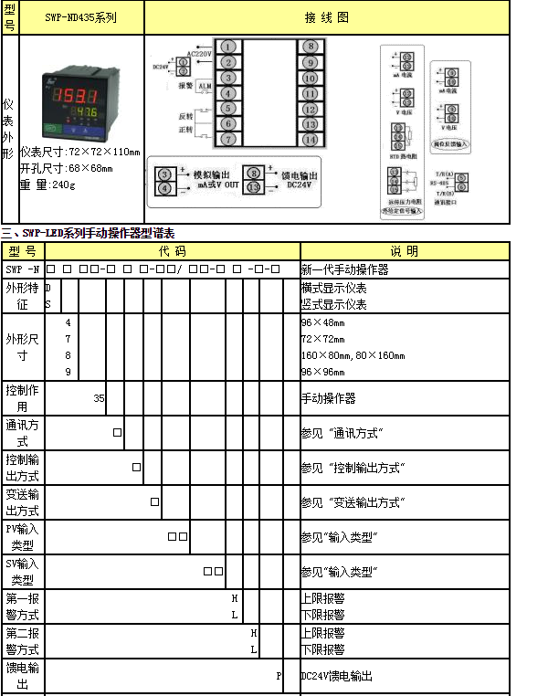 SWP-LED系列手動操作控制器/光柱顯示手動操作器可接在各種調(diào)節(jié)器之后作備用儀表。一旦調(diào)節(jié)器失效,可由本控制器進行手動操作。并可取代伺服放大器直接驅(qū)動閥門。