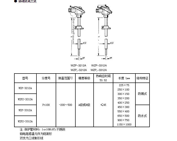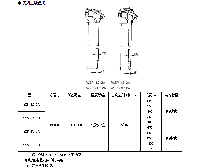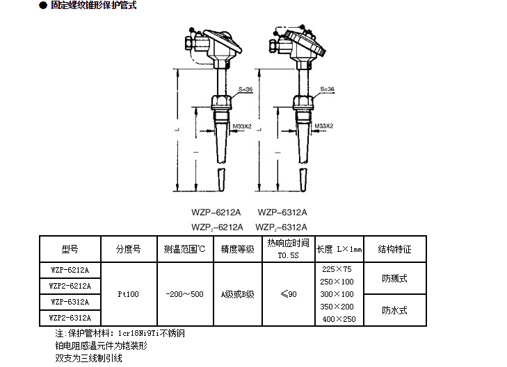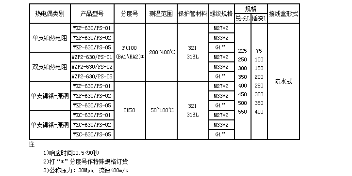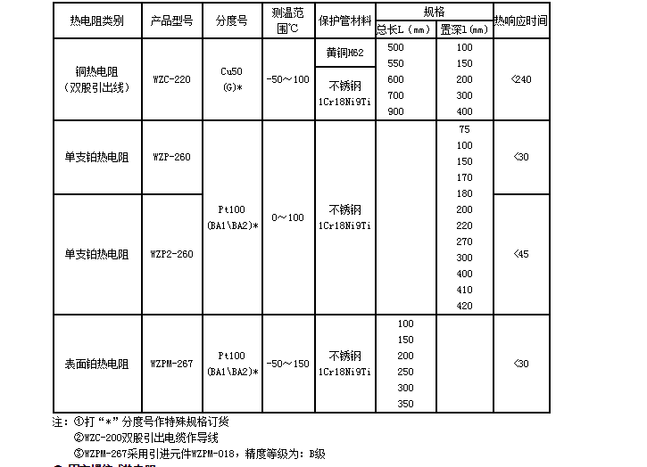 根據(jù)國家規(guī)定,我廠從1987年起開始生產(chǎn)符合lEC國際標準分度號的Pt1OO鉑熱電阻和符合專業(yè)標 準分度號的Cu50銅熱電阻兩大類裝配式、統(tǒng)一設計型熱電阻;