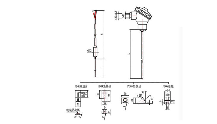 | 熱電偶分度號 | 測溫元件 | 外徑尺寸 | 使用溫度 | 外鞘材質(zhì) | 鎧裝長度L | 引出導線S | 絕緣電阻值 |
