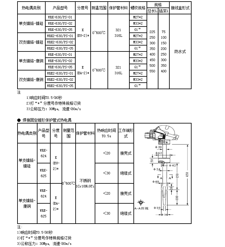 產(chǎn)品執(zhí)行標(biāo)準(zhǔn):IEC584、IEC1515、GB/T16839-1997、JB/T5582-91