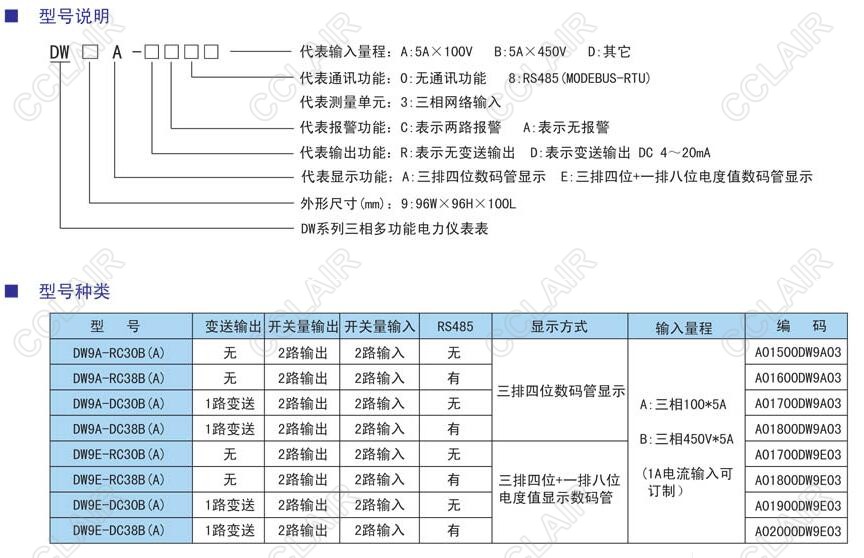 DW9A-RC30BA,DW9A-RC38BA,DW9A-DC30BA,DW9A-DC38BA,DW9E-RC30BA,DW9E-RC38BA,DW9E-DC30BA,DW9E-DC38BA,DW9E/DW9A三相多功能電力儀表